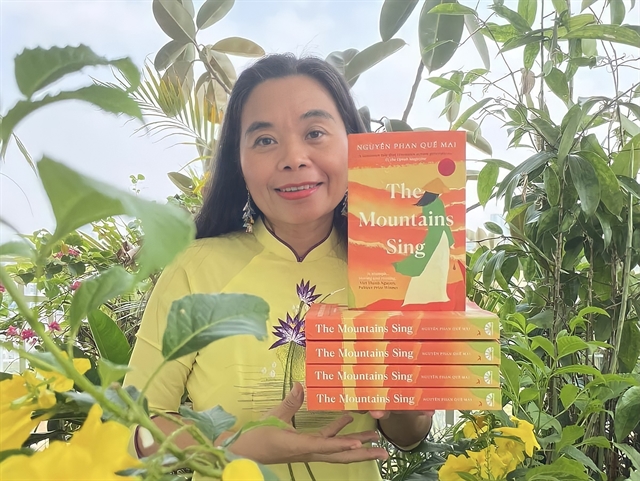 Nguyen Phan Que Mai with her latest work 'The Mountains Sing' (Photo courtesy of the author) |