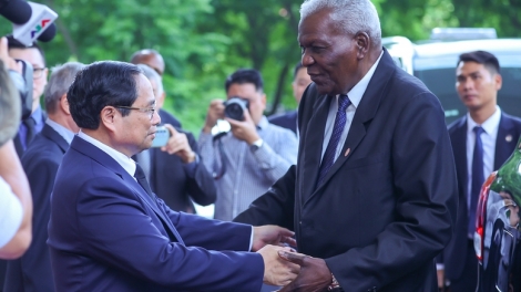 (VOVWORLD) -Prime Minister Pham Minh Chinh thanked the Party, State, Government and people of Cuba for the sincere gestures of condolence and encouragement, and the brotherly friendship between the two countries at Wednesday reception for President of the National Assembly of People's Power of Cuba Esteban Lazo Hernández, who is in Hanoi for the national funeral of General Secretary Nguyen Phu Trong.