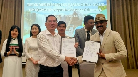 (VOVWORLD) - Dak Lak province and Kerala state of India signed 11 memorandums of understanding on tourism cooperation at the tourism promotion meeting on Monday in Buon Ma Thuot city.