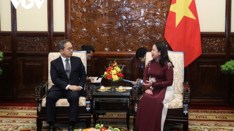 (VOVWORLD) -Acting President Vo Thi Anh Xuan on Wednesday met Japanese Ambassador Yamada Takio and Algerian Ambassador Abdelhamid Boubazine who came to say goodbye as their working terms in Vietnam end.