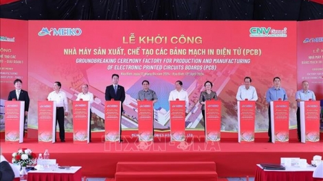 (VOVWORLD) -Prime Minister Pham Minh Chinh attended the groundbreaking ceremony of the Electronic Printed Circuit Board (PCB) plant Phase 1 invested by Japan’s Meiko Electronics Group in the Industrial Park on the left bank of Da River, Hoa Binh city, on Saturday, as part of his working program in Hoa Binh province.