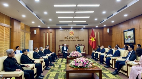 (VOVWORLD) -Minister of Home Affairs Pham Thi Thanh Tra said that as the state management agency for religion, the Ministry will continue to pay attention to and coordinate with the Vietnam Bishops' Conference to create favorable conditions for the permanent representative of the Holy See in Vietnam to operate and carry out their duties in Vietnam.