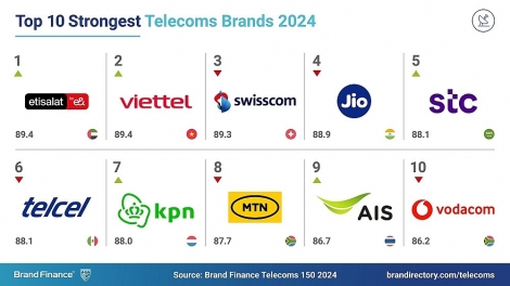 (VOVWORLD) - Viettel Military Industry and Telecoms Group (Viettel) jumped to second place on Brand Finance’s ranking of the world’s strongest telecommunications brands, ahead of major telecommunications service providers such as Swisscom (Switzerland), Jio (India), and STC (Saudi Arabia).