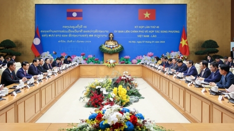 (VOVWORLD) - Vietnam and Laos agreed on major orientations to bolster their partnership in 2024, during the 46th meeting of the Vietnam-Laos Intergovernmental Committee for Bilateral Cooperation that was held in Hanoi on Sunday under the co-chair of Vietnamese Prime Minister Pham Minh Chinh and his Lao counterpart Sonexay Siphandone.