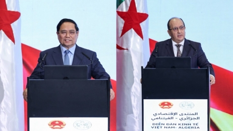 (VOVWORLD) - Vietnam can invest in Algeria in multiple fields ranging from agriculture to high-tech industries, Prime Minister Pham Minh Chinh said at the Vietnam-Algeria Economic Forum in Algiers on Wednesday. Algerian Prime Minister Sifi Ghrieb attended the event.
