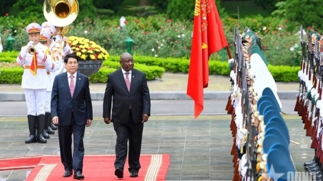 (VOVWORLD) - State President Luong Cuong on Thursday presided over a State welcome ceremony for South African President Matamela Cyril Ramaphosa, who is paying a two-day State visit to Vietnam on October 23-24.