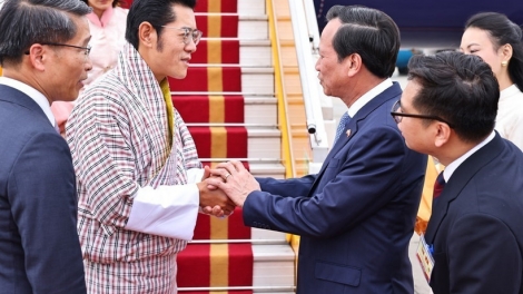 (VOVWORLD) - King Jigme Khesar Namgyel Wangchuck and Queen Jetsun Pema Wangchuck of Bhutan arrived in Hanoi on Monday, beginning their five-day State visit to Vietnam, at the invitation of State President Luong Cuong and his spouse.