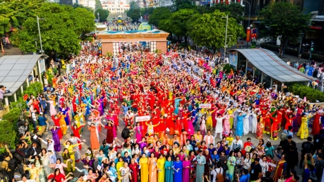 (VOVWORLD) - More than 58,000 women’s union members and residents participated in a mass folk dance performance wearing traditional long dress of Ao Dai at 36 locations across Ho Chi Minh City on Sunday, as part of activities celebrating International Women's Day.