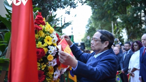 (VOVWORLD) - Prime Minister Pham Minh Chinh and his spouse on Saturday laid flowers at the plaque in commemoration of President Ho Chi Minh in Brazil’s Rio de Janeiro city.