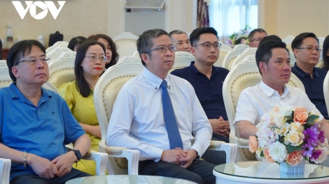 (VOVWORLD) - Officials and staff of the Vietnamese Embassy in Beijing and representatives of agencies affiliated to the Embassy gathered to watch VTV’s special live broadcast of the ceremonies to announce the merger of provincial- and commune-level administrative units on Monday.