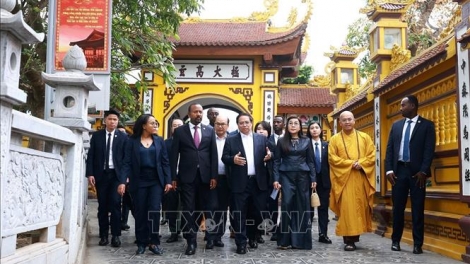 (VOVWORLD) - Prime Minister Pham Minh Chinh, Ethiopian Prime Minister Abiy Ahmed Ali, and their wives enjoyed breakfast and visited Tran Quoc pagoda in Hanoi on Thursday.