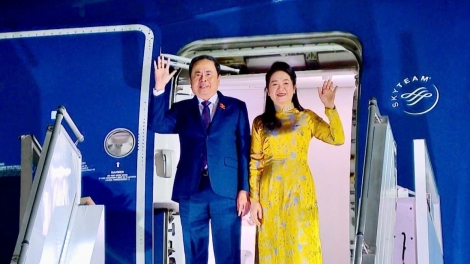 (VOVWORLD) - National Assembly Chairman Tran Thanh Man and his wife arrived at Zvartnots International Airport, Yerevan, early Wednesday, starting an official visit to Armenia at the invitation of Armenian National Assembly President Alen Simonyan.