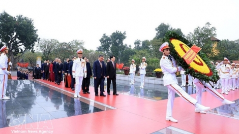 (VOVWORLD) - A delegation of Party and State leaders laid wreaths and paid tribute to President Ho Chi Minh at his mausoleum in Hanoi on Friday on the occasion of the Lunar New Year (Tet) 2026.