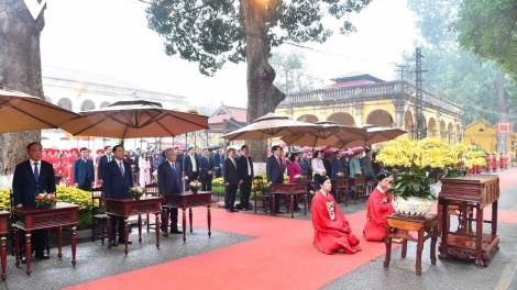 (VOVWORLD) - State President Luong Cuong presided over an incense offering ceremony at Kinh Thien Palace, located within the Thang Long Imperial Citadel in Hanoi on Thursday, to honor the predecessors’ contributions to the nation.
