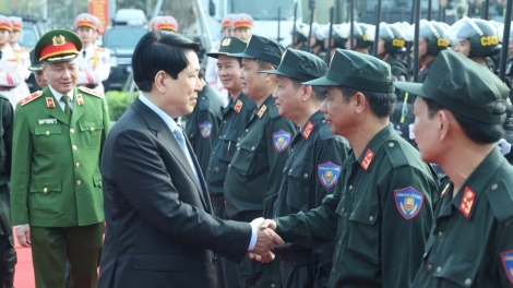 (VOVWORLD) - State President Luong Cuong paid a pre-Tet visit to the Mobile Police Command in Hanoi on Wednesday, during which he praised the force for its excellent performance in 2024 and great contributions to Vietnam’s achievements amid difficulties and challenges.