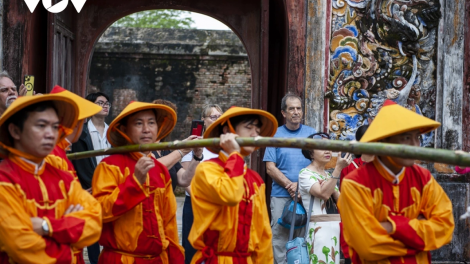 (VOVWORLD) - The Hue Monuments Conservation Centre on Wednesday re-enacted the Neu pole erecting ceremony, an important ritual that signals the beginning of the Lunar New Year celebration which was once held in the former Royal Palace during the Nguyen Dynasty.