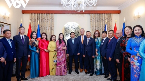 (VOVWORLD) - Prime Minister Pham Minh Chinh met with staff of the Vietnamese Embassy and representatives of the Vietnamese community in the Czech Republic on Saturday as part his official visit to the European nation.