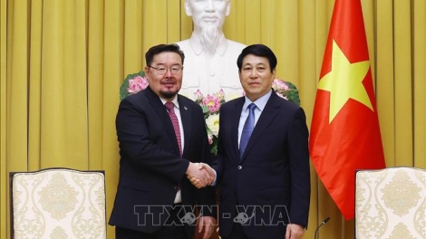 (VOVWORLD) - Vietnam has always treasured and wishes to enhance its traditional friendship with Mongolia across the board, State President Luong Cuong said during a reception for visiting Chairman of the Presidential Office of Mongolia Gombojav Zandanshatar in Hanoi on Monday.