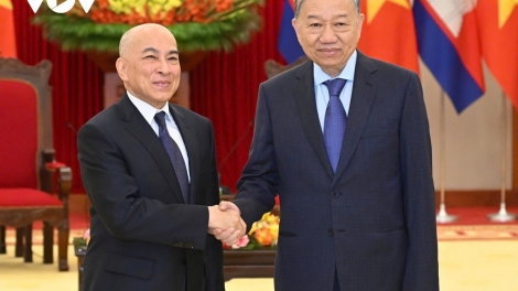 (VOVWORLD) - Vietnamese Party General Secretary To Lam welcomed Cambodian King Norodom Sihamoni on Thursday during the King’s State visit to Vietnam.