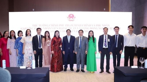 (VOVWORLD) - Prime Minister Pham Minh Chinh and his spouse met with the staff of the Vietnamese Embassy and representatives of the Vietnamese community in Brazil on Saturday as soon as they arrived in Rio de Janeiro for the G20 Summit.