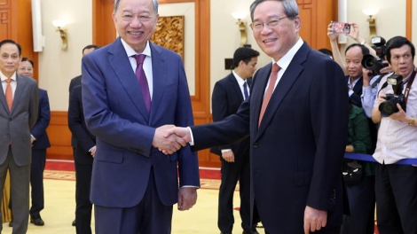 (VOVWORLD) - General Secretary of the Communist Party of Vietnam (CPV) Central Committee and State President To Lam held a meeting with visiting Chinese Premier Li Qiang on Saturday evening in Hanoi.