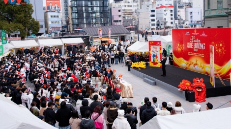 (VOVWORLD) -Overseas Vietnamese were treated to a "miniature Vietnam" in the heart of modern Fukuoka of Japan at the weekend during a Spring program featuring 30 food stalls, cultural displays, folk games, and traditional Tet (Vietnamese New Year) experiences.