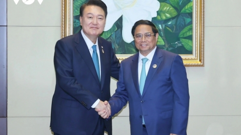 (VOVWORLD) - Prime Minister Pham Minh Chinh held a meeting with President of the Republic of Korea (RoK) Yoon Suk Yeol in Vientiane on Thursday while attending the 44th and 45th ASEAN Summits and related meetings.