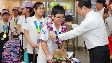 (VOVWORLD) - All 24 students of the Vietnamese team from public and non-public primary and secondary schools in Hanoi won medals of the 21st International Mathematics and Science Olympiad (IMSO) in China.