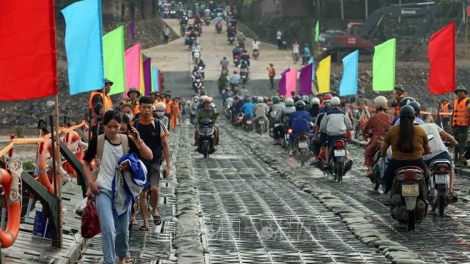 (VOVWORLD) -Military engineers on Monday opened the Phong Chau pontoon bridge, spanning the Red River and connecting Lam Thao district with Tam Nong district in the northern province of Phu Tho, serving the people’s travel needs.