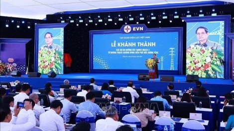 (VOVWORLD) - Prime Minister Pham Minh Chinh has praised the strong spirit and determination of Electricity of Vietnam, the National Power Transmission Corporation, experts, engineers, and workers of the power sector and people in completing the 500kV Circuit-3 power transmission line project as scheduled.