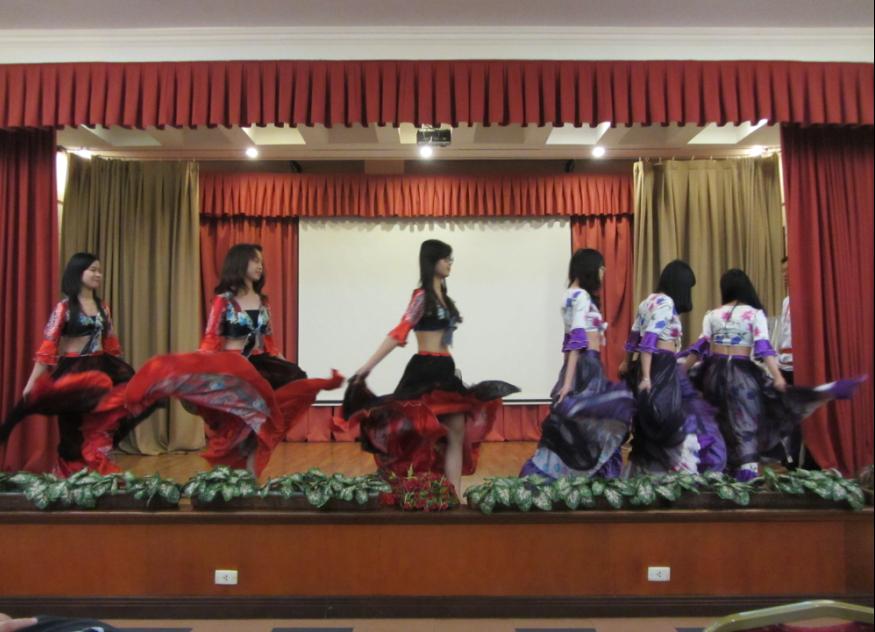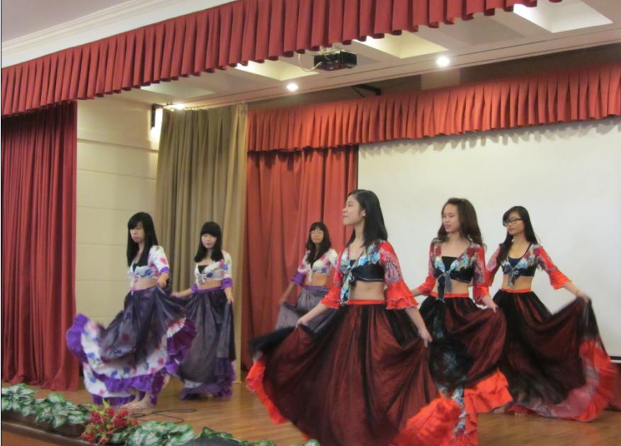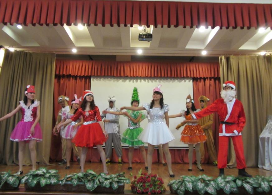 Вечер стал оживлённее, когда первокурсники Ханойского университета предпринимательства и технологий исполнили музыкально-театральную композицию под знакомую каждому русскому мелодию «В лесу родилась ёлочка». Студенты ханойского университета предпринимательства и технологий пришли в РЦНК со своей преподавательницей Эллой Хаевной, в которой текут две крови: русская и вьетнамская. По словам студентов, хотя они недавно начали изучать русский язык, Элла Хаевна пробудила в них любовь к русскому языку и к России. Элла Хаевна поделилась своими размышлениями: «Сегодня я очень рада, что здесь нахожусь, потому что здесь я могу услышать русские песни, стихи и почувствовать новогоднюю атмосферу. В этой программе участвуют и мои студенты. Я очень горжусь ими. Хотя они только два месяца изучали русский язык, они могут петь русские песни. Смотря на них, я вспоминаю свою студенческую жизнь».