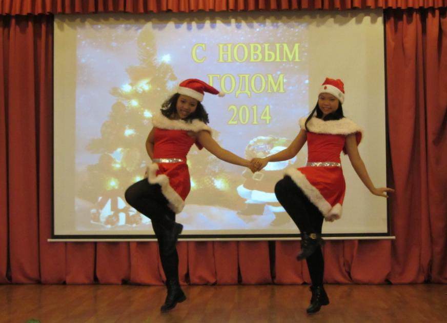 В конце программы на сцене был показан танец «Калинка» в исполнении ансамбля «Берёзка». Под весёлую мелодию этой песни все разошлись из актового зала, не забывая поздравить друг друга с Новым годом, с Рождеством и пожелать друг другу счастья, здоровья, успехов и встретиться на вечере в следующем году.