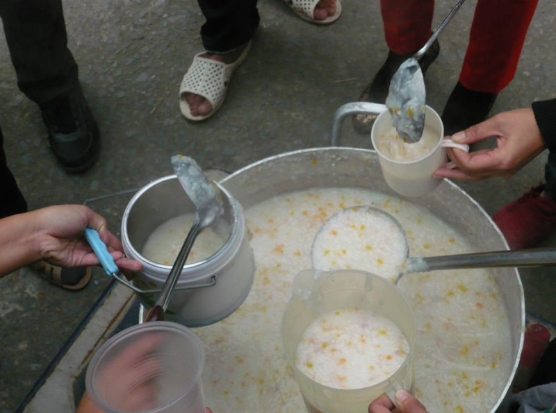 Раз в две недели в 18 часов группа вьетнамских и иностранных студентов собирается в кофейне Хюнь Ань Туана и готовит кашу. Около 9 часов ветера каша будет готова и ее разложат в 100 пластиковых коробок. Каша раздают нуждающимся вместе с одной бутылкой воды и влажной салфеткой. Хюнь Ань Туан говорит:
