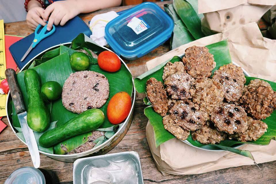 Ах, его вкус непривычный. Корочка тонкая и хрустящая, однако мякиш довольно мягкий. Давайте я распрошу производительницу о секретах его приготовле под названием «Вегетарианская рыба»: «У нас есть хлебная закваска из цельнозерновой муки и семян льна, подсолнечника и тыквы. Такой хлеб полезен для кишечника. Кроме того, мы продаем печенья и капкейки, сделанные из цельнозерновой, овсяной и миндальной муки. Можно есть хлеб с маслом из арахиса, орехов кешью, миндаля, кунжута или с вегетарианским паштетом из фасоли и грибов».