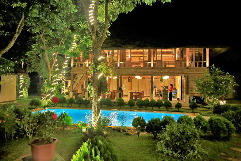 Из Ханоя в «Мai Chau Villas» вилладж можно доехать на машине за 4 часа. На курорте возведены 10 простых бунгало в стиле традиционных деревенских домов на сваях вьетнамских малых народностей. Все бунгало построены из натуральных материалов, а для создания интерьера используется шелк из промысловой деревни Хадонг, гончарные изделия из деревни Батчанг, местные горные камни и др. Эти дома позволяют вам почувствовать себя более расслабленно, более умиротворенно в гармонии с окружающей природой. У каждого бунгало свое отдельное пространство, однако, они расположены рядом друг с другом, поэтому туристы чувствуют себя вполне уютно, живя здесь. Кстати, в каждом бунгало имеется открытая ванна, окруженная бамбуковым забором, что дает туристам возможность насладиться природной атмосферой во время принятия водных процедур. Вот что о «Мai Chau Villas» говорит главный администратор гостиницы Нгуен Тхи Хуэ: «Mai Chau Villas построен из чисто натуральных материалов по традиционной архитектуре народности Тхай: крыша и интерьер в бунгало из бамбука и натурального дерева. Все бунгало окружены живыми заборами. Прямо перед курортом находится зеленое рисовое поле. Тщательно подобранный интерьер создает атмосферу уюта и комфорта для постояльцев. К нам приезжает очень много иностранных туристов, особенно, из России. Все, что есть в. Mai Chau Villas, сделано исключительно из натуральных и природных материалов».