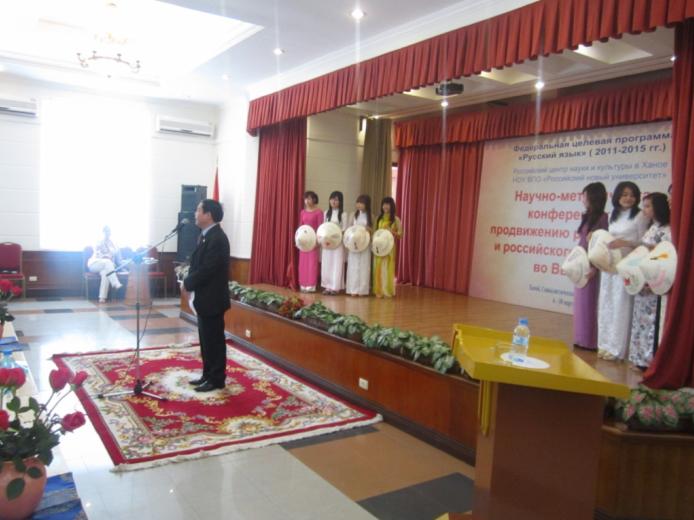 В рамках вышеуказанной программы, на днях в Российском центре науки и культуры в Ханое прошла научно-методическая конференция по продвижению русского языка и российского образования во Вьетнаме. Она была организована министерством образования и науки РФ, Российким новым университетом (РосНОУ) и представительством России во Вьетнаме по вопросам российско-вьетнамского сотрудничества.