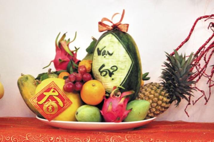 Традиционный новогодний праздник Вьетнама прошёл. Однако яркие моменты в памяти и праздничное настроение жителей ещё остались. Как гласит пословица «Январь – месяц досуга и развлечений». Эта мысль уже глубоко укоренилась в подсознании вьетнамцев, так что в начале нового года друзья, коллеги навещают друг друга, желая друг другу всего наилучшего. Хотя три главных новогодних дня прошли, во многих семьях на алтаре всё ещё стоят подносы с пятью видами фруктов. Кажется, жители стараются сохранить новогоднюю атмосферу. Можно сказать,являясь специфической чертой и незаменимой частью традиционного новогоднего праздника вьетнамцев, поднос с пятью видами фруктов имеет разное значение.