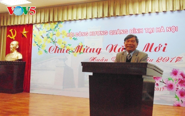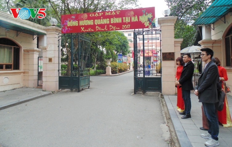 По случаю наступившего Нового года Огненного Петуха во Вьетнамской государственной библиотеке состоялась встреча земляков-уроженцев провинции Куангбинь, которые проживают, обучаются и работают в Ханое. Среди них были пенсионеры, работавшие в партийных и государственны органах, а также люди, работающие в разных областях народного хозяйства страны, и студенты различных вузов Ханоя. Однако все они пришли на встречу с общим желанием встретиться и пообщаться со своими земляками, рассказать друг другу о своей жизни и работе. Бывший заместитель министра культуры и информации Вьетнама (ныне – министерство информации и коммуникаций), председатель Общества земляков провинции Куангбинь в Ханое Фан Кхак Хай сказал: «Общество земляков провинции Куангбинь было создано в ответ на чувства уроженцев провинции Куангбинь, которые проживают, учатся и работают в Ханое. Кроме того, они хотят встречаться и общаться друг с другом, чтобы вспоминать о своей родине – общем доме и получать полную информацию о родной провинции для внесения вклада в строительство малой родины».