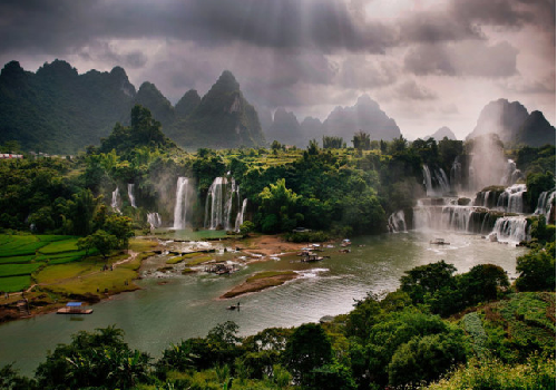 Расположенный на территории вьетнамо-китайской границы водопад Банжок также называют самым крупным естественным водопадом Юго-западной Азии. Его захватывающий вид привлекает к себе большое количество отечественных и зарубежных туристов. Водопад длиной 300 метров обрушивается с высоты 53 метров. Вода падает вниз по каменным ступеням, что создало мелкие водопады. Стоя у подножья водопада, вы будете очень приятно чувствовать себя. Вас охватывает туманное пространство, созданное дымкой. В солнечные дни в брызгах водопада играют множество радуг.