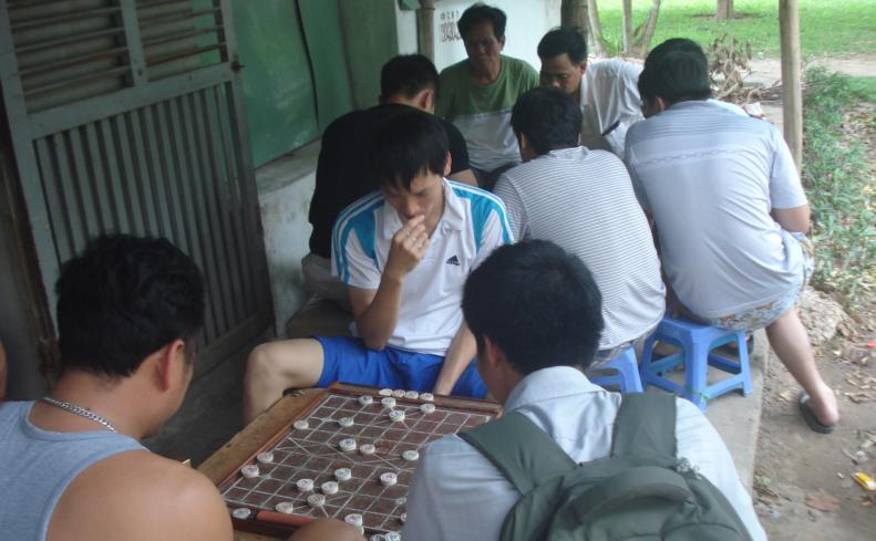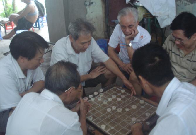 У каждой шахматной доски сидят не только два игрока, но и около десяти человек, которые смотрят и комментируют ходы игры. Каждый из ходов шахматной игры тщательно обдумывается игроками и зрителями. Всё это повышает привлекательность и оживлённость у каждой из шахматных досок. Если раньше игра в китайские шахматы считалась развелечением для пожилых людей, то в настоящее время она привлекает внимание большого количества молодых людей. В этой чайной лавке играют в шахматы не только пожилые люди и пенсионеры, но и представители молодёжи и рабочие. Многие студенты также заходят сюда, чтобы попить чай и играть некоторые партии в шахматы в свободное от уроков время. 30-летний Чыонг Вьет Дык, который постоянно играет в шахматы в чайной лавке господина Нго Ван Куета, сказал: «Здесь играет много моих сверстников, поэтому я часто прихожу сюда, чтобы играть в шахматы. После работы люди собираются здесь и играют в шахматы в дружеской и радостной атмосфере».