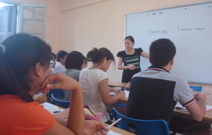 В один из последних дней июня мы посетили один из уроков по русскому языку второго курса Ханойского университета (раньше – Ханойский институт иностранных языков), который лиридует во Вьетнаме в обучении иностранным языкам студентов-лингвистов. После минутного знакомства с нами, студенты начали открывать свои учебники и тетради, уже готовые к новому уроку. Несмотря на душную летнюю погоду и последние дни учебного года, в классе царили порядок и увлечённая и вдохновенная учебная атмосфера. Это был урок по практике русского языка, поэтому они выступали с большим пылом и активно отвечали на вопросы, которые носят открытый характер и широко применяются в разговорной практике. Преподавательница русского языка Ханойского университета Нгуен Тхи Хюэ сказала: «Наши студенты с упоением изучают русский язык, хотя сейчас во Вьетнаме русский язык не так популярен, как некоторые другие иностранные языки. На занятиях они выступают с большим энтузиазмом, что оживляет учебную атмосферу в классе. Мы рады, что в нашем университете уровень подготовки студентов, изучающих русский язык, сравним и даже выше уровня подготовки студентов, изучающих другие иностранные языки. Это дало нам большую радость вдохновение».