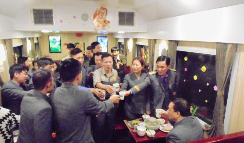 | Проводники поезда поздравляют друг друга с Новым годом. Фото: VOV/ Q.Khanh |