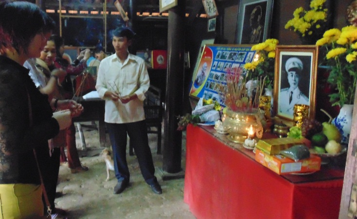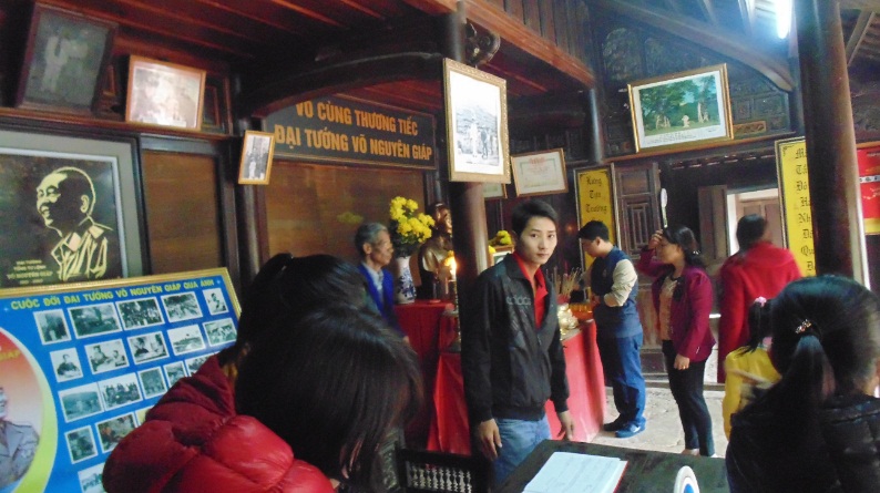 А госпожа Лай Тхи Хоа, сотрудница пограничной службы в Ханое, вышла замуж за уроженца родной земли генерала Во Нгуен Зяпа уже 27 с лишним лет назад. Почти каждый год вся её семья возвращается в уезд Летхюй для встречи Нового года по лунному календарю. Но гораздо большее значение имеет то, что в ходе своей поездки на родину она и члены её семьи пришли с искренним почтением возжечь благовония перед алтарём легендарного полководца. Госпожа Лай Тхи Хоа поделилась своими размышлениями: «Посещая дом-музей я очень взволнована, потому что генерал Во Нгуен Зяп не только национальный герой, но и человек, посвятивший всю свою жизнь народу и Родине. У меня слёзы наворачиваются на глаза, когда я думаю о его огромных заслугах перед армией в частности, и всем народом Вьетнама в целом».