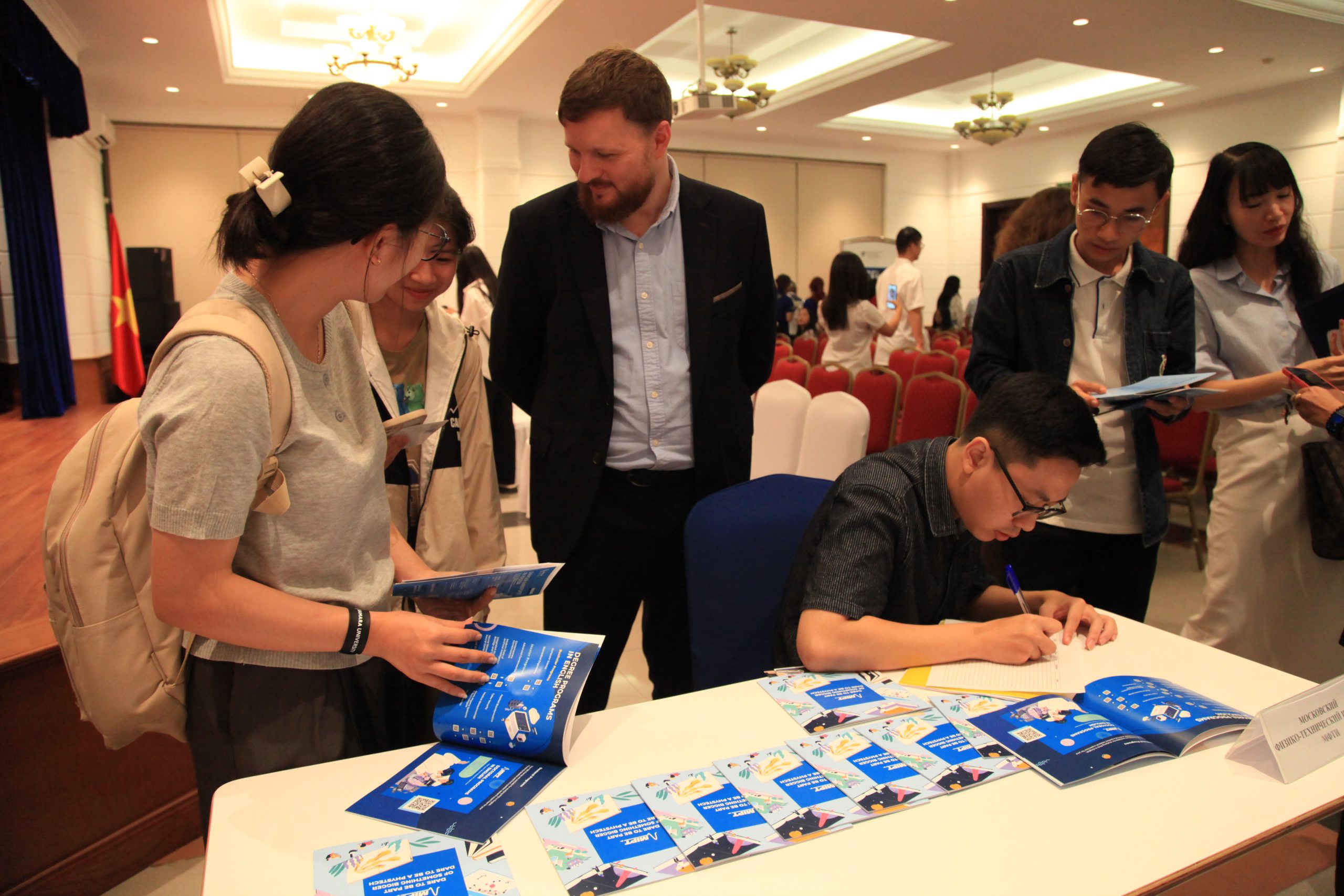 На каждом стенде молодые вьетнамцы могли легко ознакомиться с университетами с помощью информационных табличек. Также демонстрировались видеоролики, рассказывающие об учебной базе и студенческой жизни в России, особенно жизни вьетнамских студентов. После просмотра видео у ребят была возможность участвовать в беседе в формате вопрос – ответ, посвященной университетам.