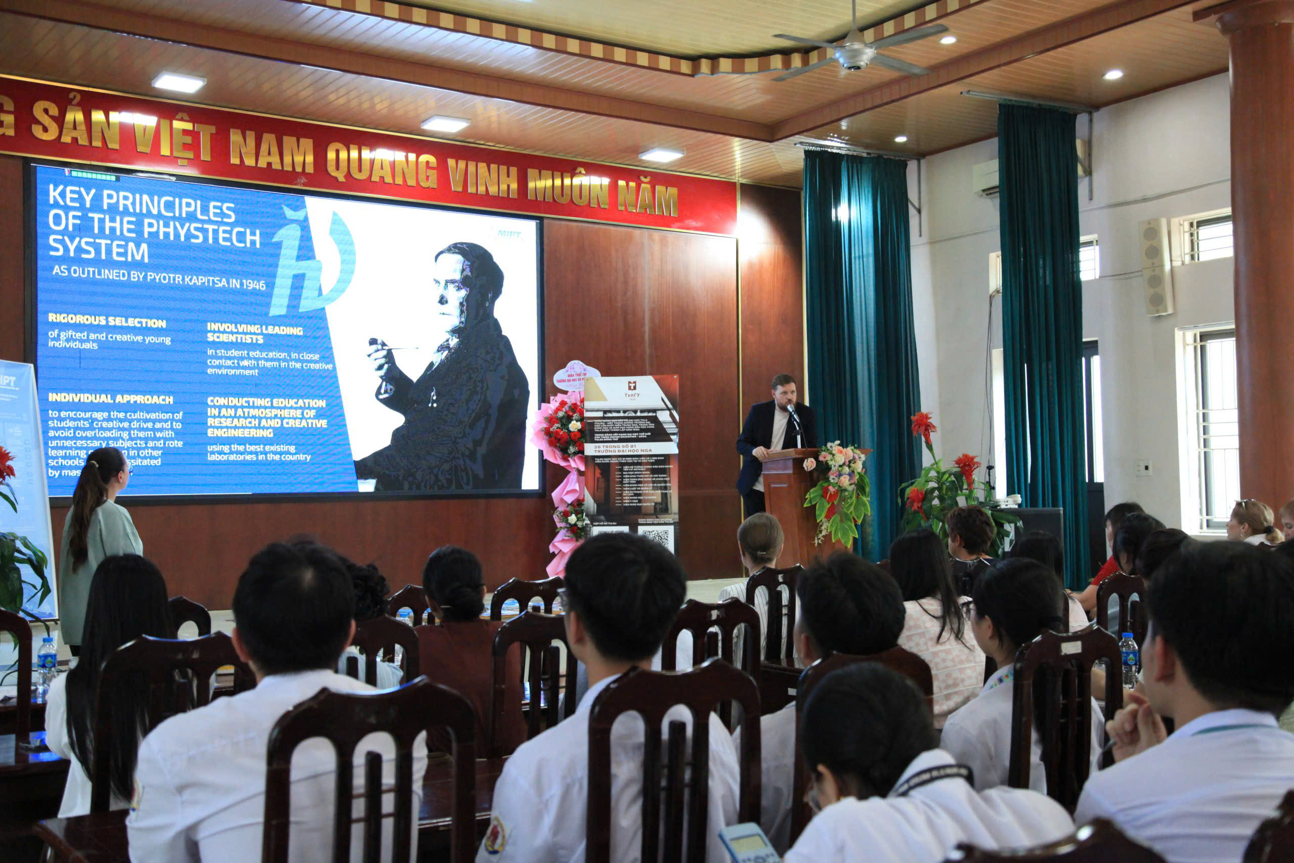 Презентация российских вузов в спецшколе для одарённых детей провинции Хынгйен. Фото: Русский дом в Ханое