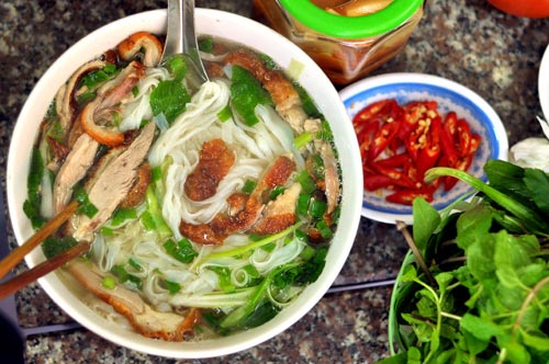 Ресторанчик «Фо с зажаренной на вертеле уткой» на ханойской улице Лодук открыт с утра до 9 часов вечера. Здесь подаются такие блюда, как жареная утка на сковороде, утиная каша, фондю «лау» с уткой, Фо с зажаренной на вертеле уткой. Одна чашка Фо с зажаренной уткой стоит 30 тысяч донгов.