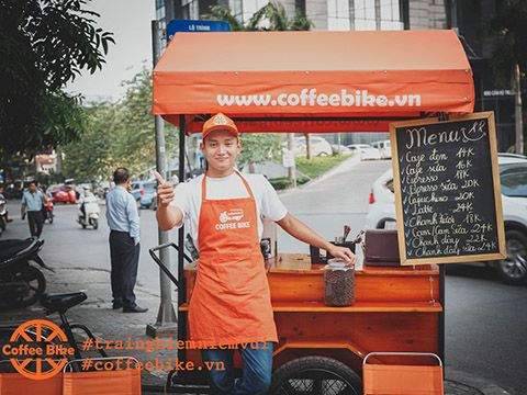 На улицах Хошимина и Ханоя легко встречаются оранджевые трехколесные велосипеды «кофебайк», которые сравнивают с современными итальянскими мини-кофе-барами, оснащенными кофеваркой, мойкой и бесплатной Wifi-сетью. Наслаждайтесь жизнью и общением, пока ваш кофе готовится при вас! Нгуен Туен – один из постоянных клиентов кофебайка делится своими размышлениями: «Я обычно начинаю новый рабочий день с чашки горячего кофе, покупаемого у кофебайка. Эта мобильная кофе-забегаловка каждый день проезжает мимо школы моего сына, поэтому мне очень удобно покупать у него кофе. Кофе чистый, вкусный и ароматный!».