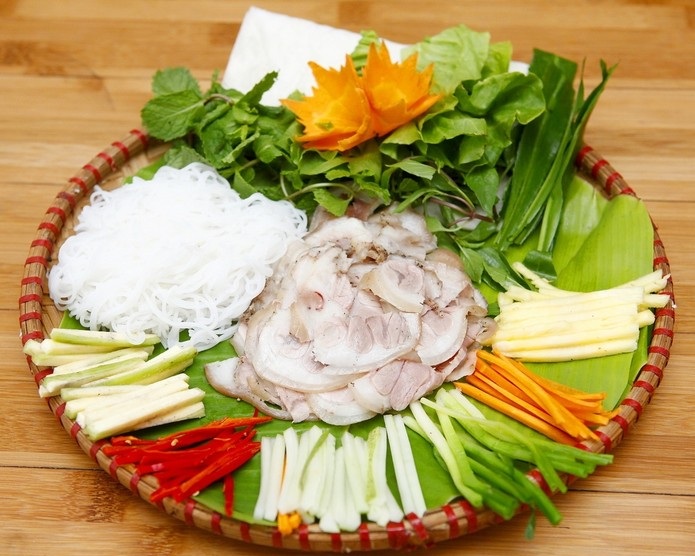 Любители кухни центральной части Вьетнама знакомы с роллами из свинины. Основными ингредиентами этого блюда являются буженина, маринованные креветки, салат, укроп, баклажаны, огурцы и зеленый манго. Вкус блюда решает именно кисло-сладкий соус. Данг Минь Тхи – жительнице улицы Кхамтхиен Ханоя очень нравится это блюдо. «Мне нравится сладость креветок, смешанная с кислинкой зеленого манго. Вернувшись домой, я пыталась приготовить те блюда, которые подаются в этом ресторане. Готовить роллы не сложно. Они обычно готовятся с пряными травами, креветками, мясом и свежей рисовой лапшой. Едят роллы с кисло- сладким соусом».