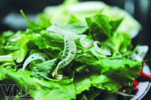 Фондю из улиток особенно еще и тем, что вместе с ним употребляются разные овощи, грибы и зелень, такие как, имопея водяная, салат листвовой, майоран, мелко нарезаный цветок банана..., которые хорошо сочетаются с лау-ок и очень полезны для здоровья. Будет замечательно, если в выходные дни вместо повседневных блюд вы приготовите для семьи такое замечательное блюдо как лау-ок.