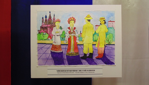 | Картина «Друзья из Вьетнама в России» 15-летней Улуговой Айдин из Узбекистана. Фото: VOV/ Q.Khanh |